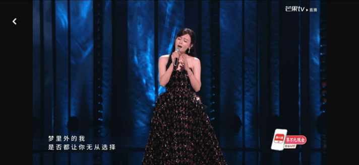 一首无修音、无滤镜的《一帘幽梦》发挥良好,搭配优雅的长裙,轻松唤起观众的集体记忆,引发大合唱情理之中。